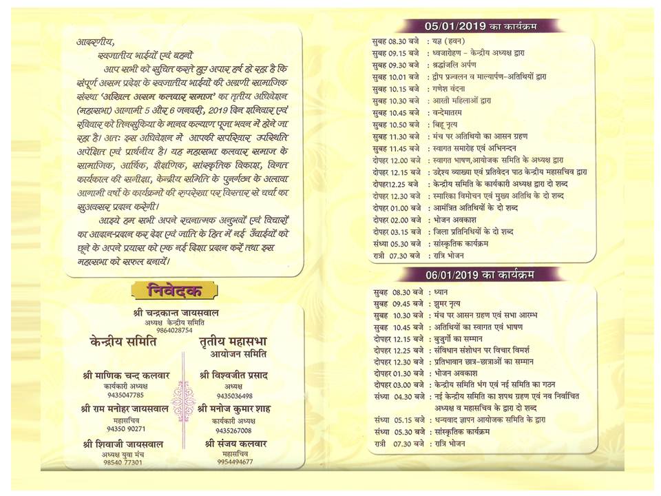 यादगार लम्हे – अखिल असम कलवार समाज, तृतीय महासभा, तिनसुकिया
