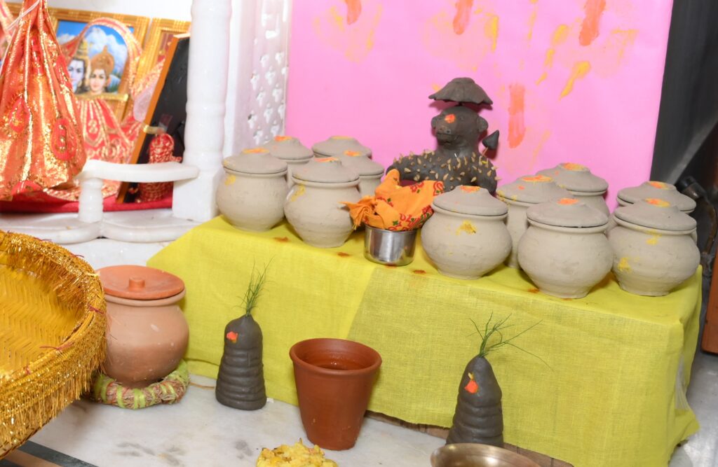 • छोटे-छोटे मिट्टी के कलश 5, 7 या 11 और सभी ढक्कन के साथ भी कुम्हार से लाए जाते हैं।