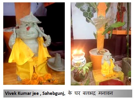 समस्तीपुर के श्री रूपेश ब्याहूत जी से प्राप्त “बलभद्र मनावन” में  बनाए गए भगवान बलभद्र जी का एक मनोरम स्वरूप