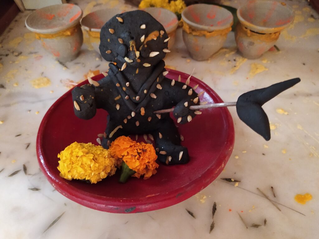 • मूर्ति के दोनों ओर रखे जाते हैं दो “सिरी जी” — जो बैल का प्रतीक हैं और कृषि जीवन का प्रतिनिधित्व करते हैं।
